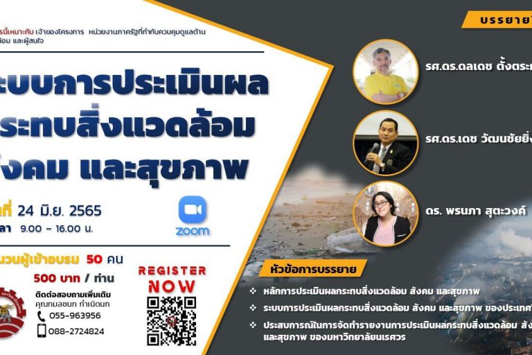 พ.ค.272022 ขอเชิญชวนผู้สนใจเข้าร่วมอบรมหลักสูตร “ระบบการประเมินผลกระทบสิ่งแวดล้อม สังคม และสุขภาพ” ช่องทางออนไลน์ กิจกรรมและโครงการ Read more