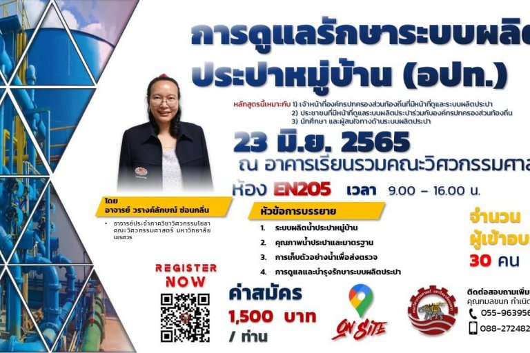 พ.ค.272022 ขอเชิญชวนผู้สนใจเข้าร่วมอบรมหลักสูตร “การดูแลรักษาระบบผลิตประปาหมู่บ้าน (อปท.)” กิจกรรมและโครงการ, นิสิต Read more