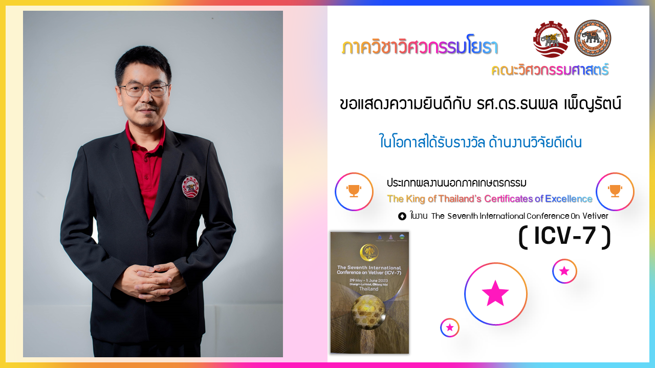 ในโอกาสได้รับรางวัล ด้านงานวิจัยดีเด่น ประเภทผลงานนอกภาคเกษตรกรรมทุนอุดหนุนการวิจัยและนวัตกรรมทุนพัฒนาศักยภาพในการทำงานวิจัยของอาจารย์รุ่นใหม่ The King of Thailand’s Certificates of Excellence