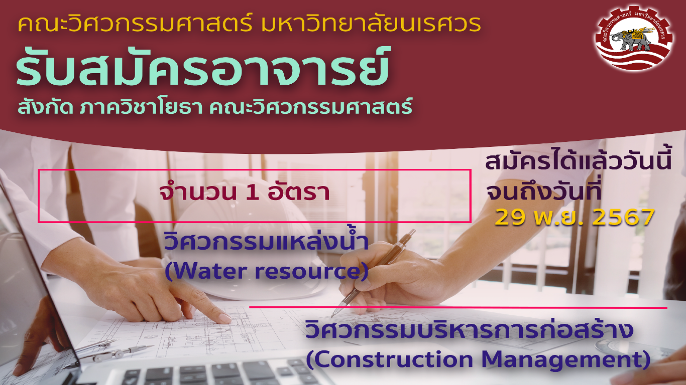 ประกาศรับสมัครเพื่อสอบคัดเลือกบรรจุและแต่งตั้งเป็นพนักงานมหาวิทยาลัย ตำแหน่งอาจารย์ สังกัดภาควิชาวิศวกรรมโยธา คณะวิศวกรรมศาสตร์