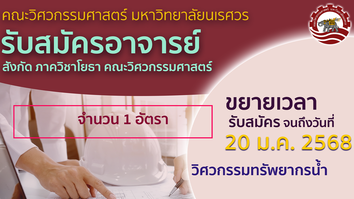 ประกาศขยายเวลารับสมัครเพื่อสอบคัดเลือกบรรจุและแต่งตั้งเป็นพนักงานมหาวิทยาลัย ตำแหน่งอาจารย์ สังกัดภาควิชาวิศวกรรมโยธา คณะวิศวกรรมศาสตร์