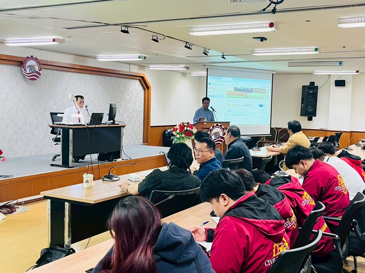 ในการนี้ ผศ.ดร.กำพล ทรัพย์สมบูรณ์ คณบดีคณะวิศวกรรมศาสตร์ และคณาจารย์สาขาวิศวกรรมโยธา ได้ให้เกียรติกล่าวต้อนรับ พร้อมมอบของที่ระลึกแก่วิทยากรและทีมงาน