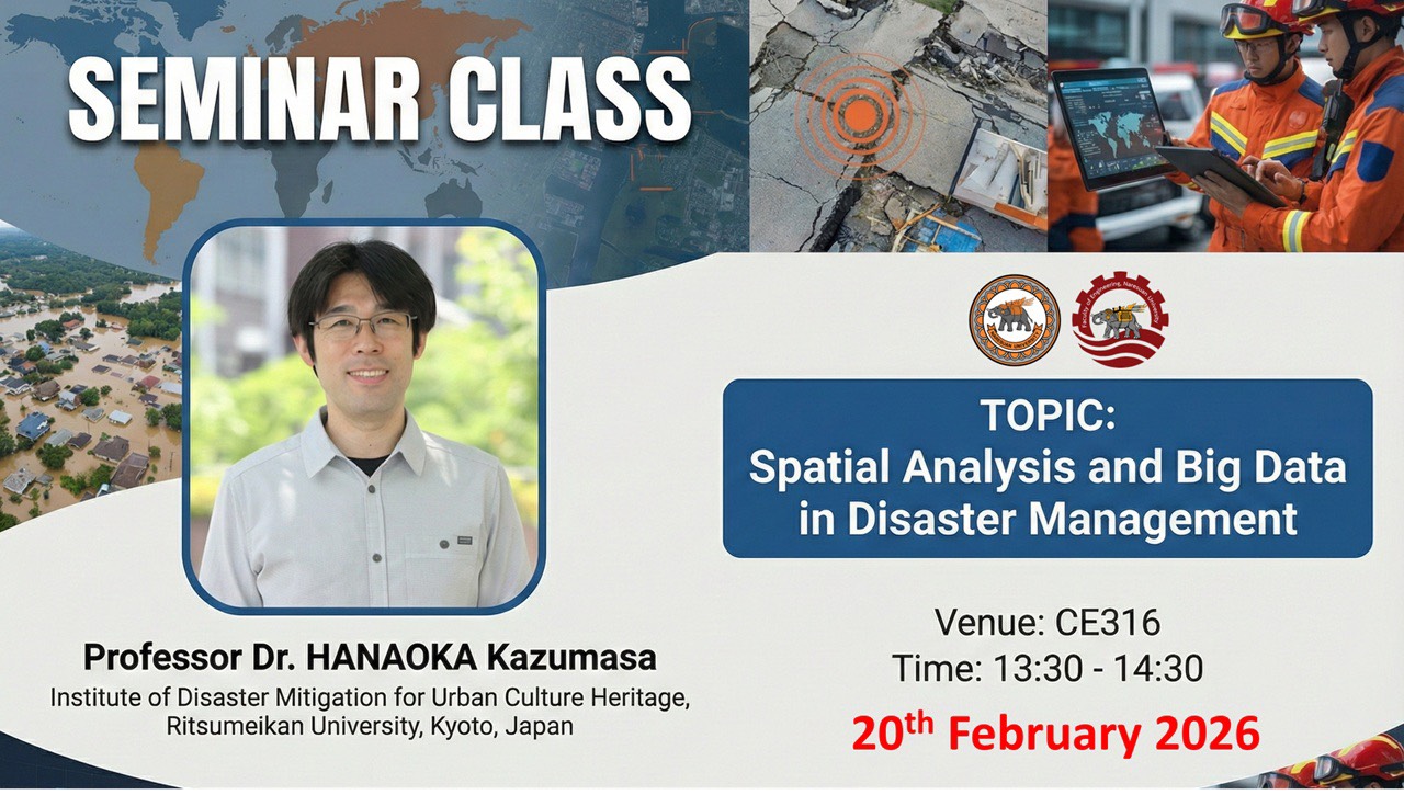 ขอเชิญนิสิตและผู้สนใจ เข้าร่วมรับฟังการบรรยาย และแลกเปลี่ยนรู้ โดย Professor Dr. HANAOKA Kazumasa จากสถาบัน Institute of Disaster Mitigation for Urban Culture Heritage, Ritsumeikan University, Kyoto, Japan